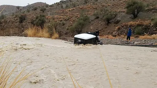 به گزارش رکنا، حمود علی‌پور روز دوشنبه گفت: ساعتی پیش پس از بارش نزولات آسمانی و جاری شدن سیلاب در تمامی محورهای اصلی و فرعی شهرستان طبس، یک خودرو سمند با ۲ سرنشین در محور دیهوک - طبس هنگام عبور از سیلاب گرفتار شدند.