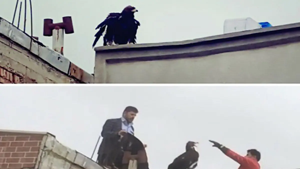 مشاهده عقاب در پشت بام یکی از خانه های مهاباد