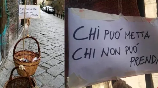 به همراه این سبدها یادداشتی دیده میشود که روی آن نوشته شده: «اگر میتوانی چیزی درون این سبد بگذار و اگر نمیتوانی هر چه نیاز داری بردار.» این سبدها در ایتالیا به " سبدهای حمایتی " معروف شده است. بنا به گزارش رسانههای محلی ایتالیا این پویش جالب اجتماعی برای کمک به افراد بی خانمان و نیازمند که در ایتالیا " panaro solidale " معروف شده است اولین بار توسط شخصی با نام " آنجلو پیکونه " انجام شد.