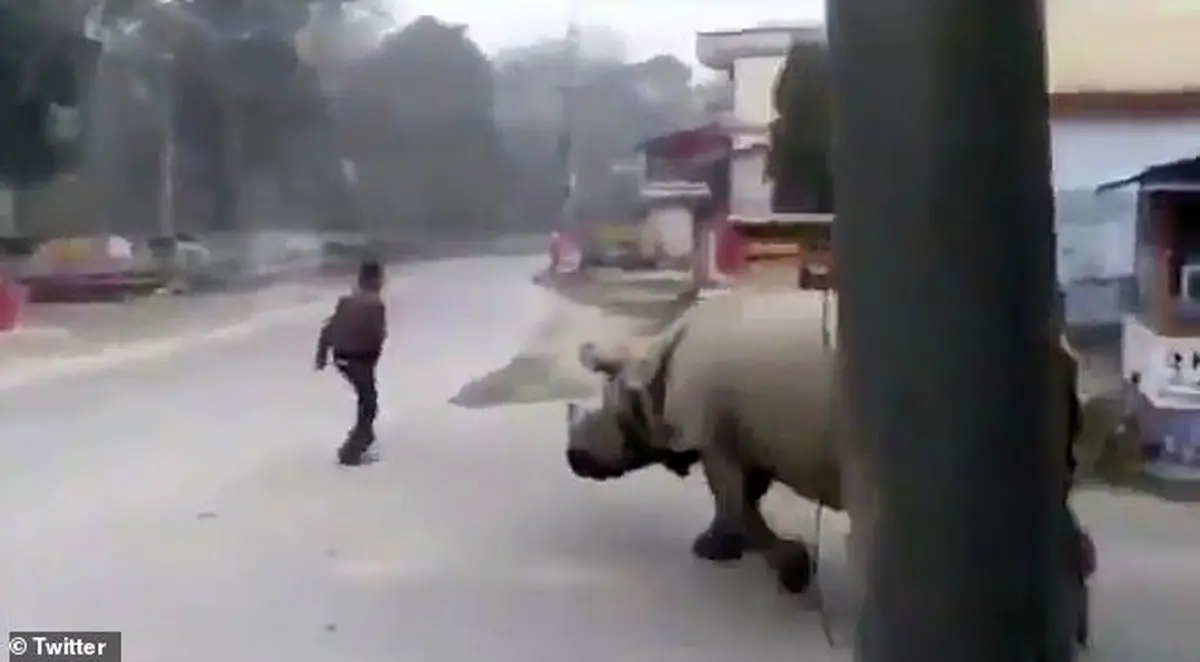 در ویدیو منتشر شده نشان می دهد که عابران پیاده در حال عبور از خیابان هستند که متوجه یک کرگدن گرسنه می شوند که به خاطر غذا وارد خیابان شده و قصد دارد به آن ها حمله کند.