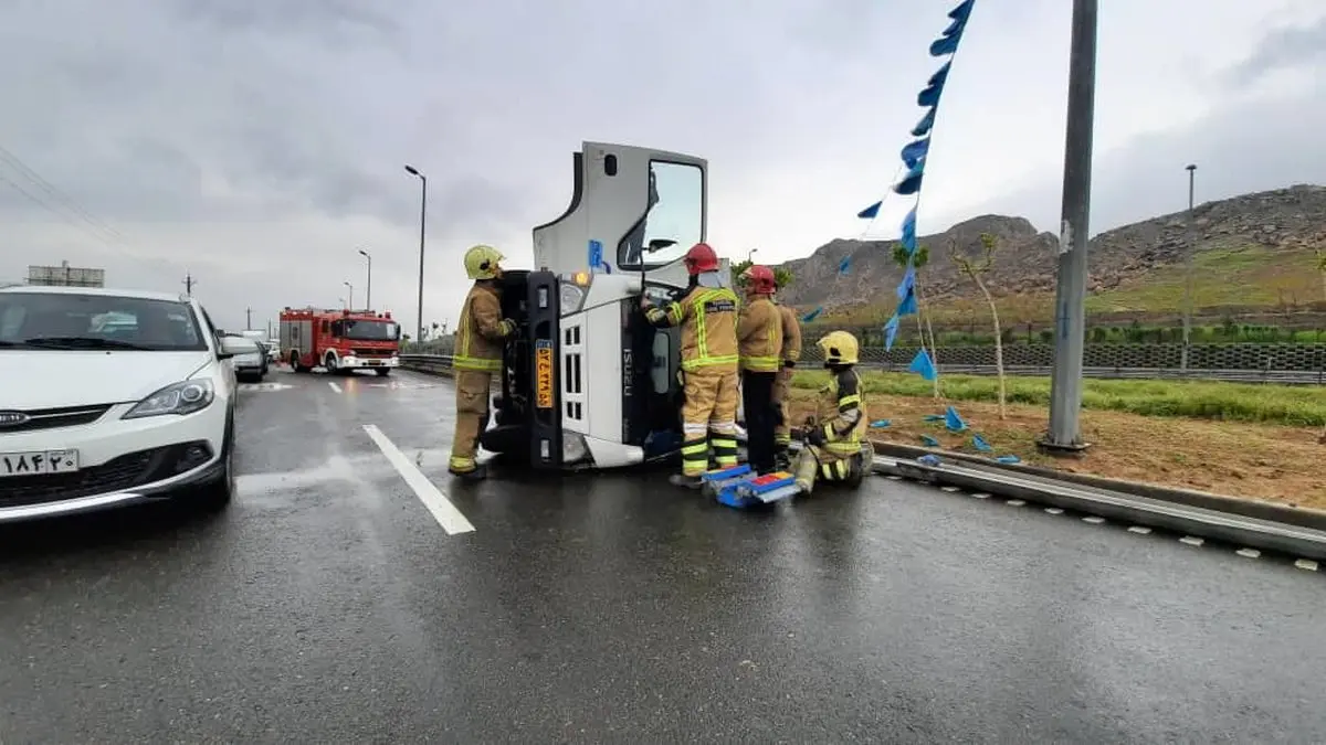 واژگونی یک کامیونت در بزرگراه بسیج + عکس