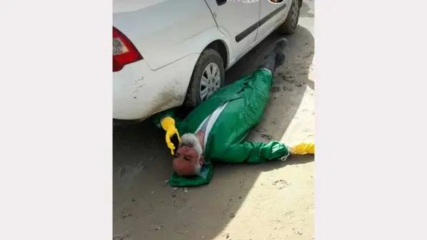 حوادث رکنا: امام جمعه شهرستان آبادان پس از غسل و خواندن نماز و تشیع تدفین فوت شدگان کرونایی مشغول استراحت بود که در این عکس دیده می شود.