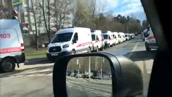 حوادث رکنا: فیلمی از صف بستن آمبولانسهای ویژه بیماران کرونایی در روسیه را مشاهده میکنید.