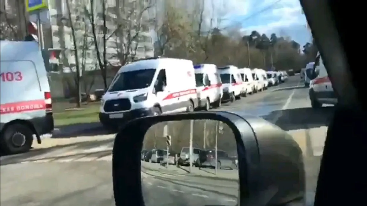 صف بستن آمبولانسهای بیماران کرونایی در مسکو + فیلم