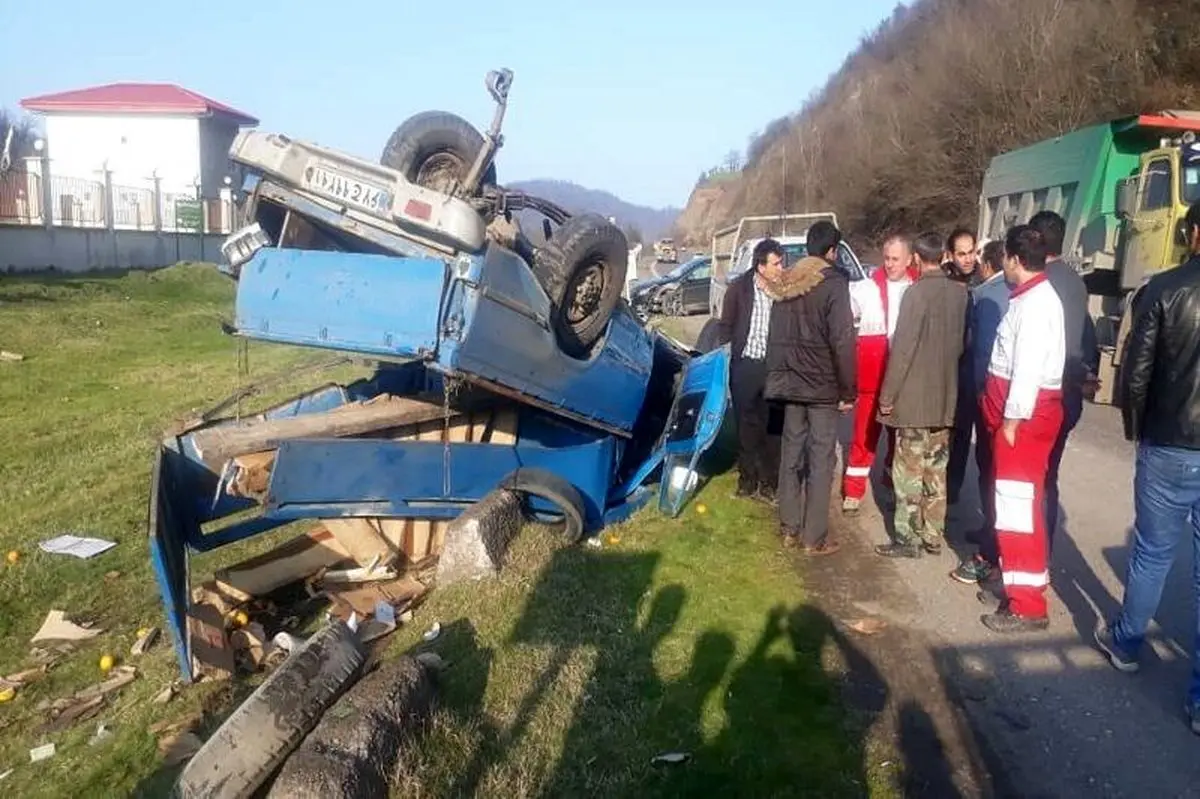 حادثه ای هولناک در محور آستارا / تصادف شدید نیسان و کامیون با 3 مصدوم