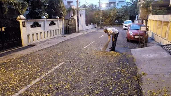 حوادث رکنا: وزیر آموزش هند با جارو خیابان خانه اش را تمیز کرد.