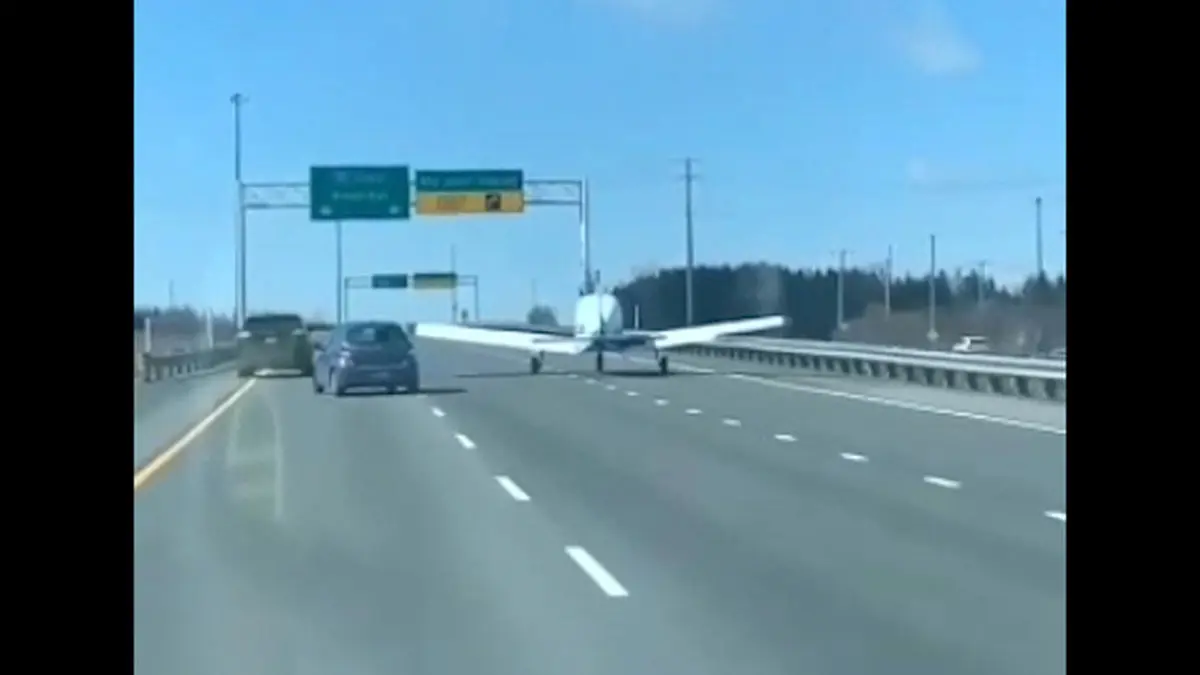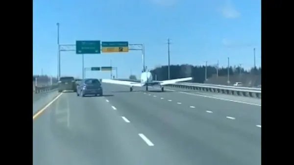 لحظه فرود اضطراری هواپیما در اتوبان + فیلم / کانادا