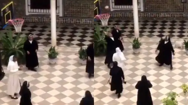در ویدیو منتشر شده نشان می دهد که راهبه ها در محوطه حیاط کلیسا اقدام به بسکتبال بازی می کنند و خود را به نحوی سرگرم کردند.