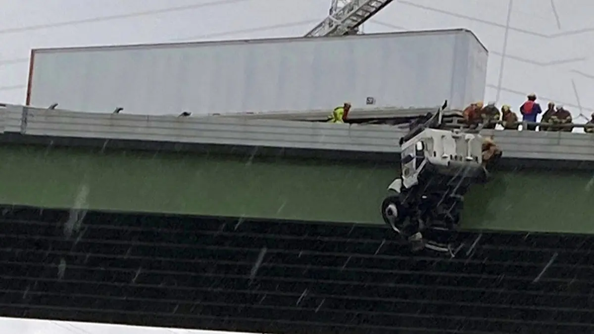 فیلم نجات هالیوودی راننده تریلی که داخل کابین از روی پل آویزان بود