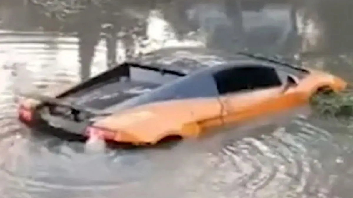 فیلمی هیجان انگیز از سقوط لامبورگینی به رودخانه / مرد تایلندی شوکه شد