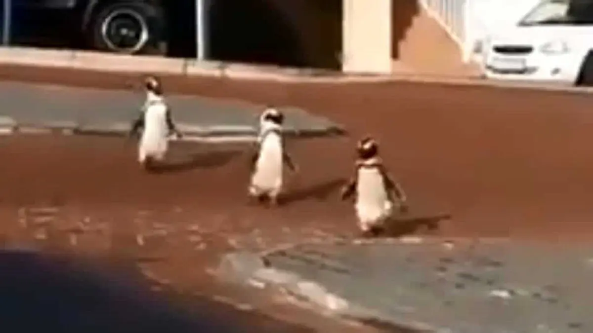 پرسه سه پنگوئن در خیابان های کرونایی آفریقا + فیلم