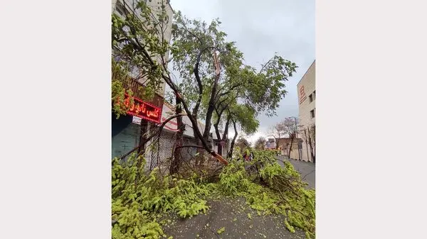 برخورد صاعقه با درخت در چهارراه سعدی زنجان+ عکس