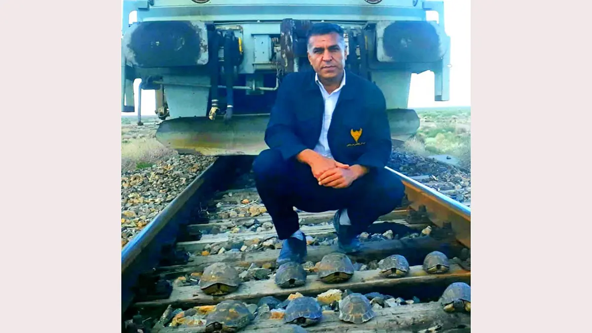 حسین رنجبر لوکوموتیوران سیرجانی در مسیر ایستگاه خاتون آباد به سرچشمه که یک مسیر فرعی بوده و از محدوده ارتباطی خارج است باید آهسته میراند تا حادثهای رخ ندهد به همین دلیل متوجه میشود لاک پشتهایی در ریل گرفتار شده اند وی با حس طبیعت دوستی که دارد قطار را متوقف میکند و اقدام به نجات این گونههای جانوری مینماید راننده در طول مسیر با فاصله حدودا ده کیلومتر، چندبار با این صحنه روبرو میشود که در مجموع هفده لاک پشت با تلاش وی از بند اسارت آزاد شده و در خارج از ریل رها میشوند. حسین رنجبر چگونگی ورود لاک پشتها به ریل را جاهایی میداند که زمین با ریل در یک سطح قرار گرفته است که این حیوانات پس از ورود به ریل اسیر شده بودند.