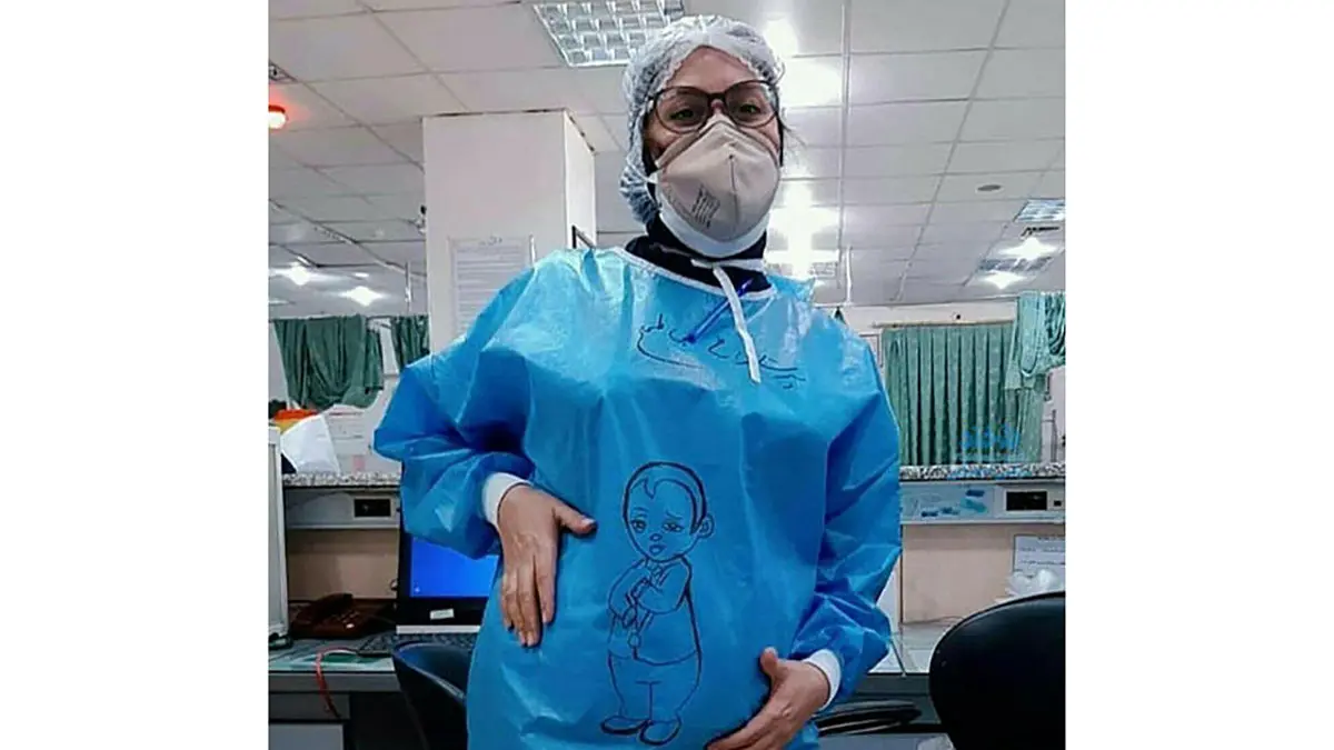 فداکاری خانم پرستار باردار در روزهای کرونایی تهران + عکس