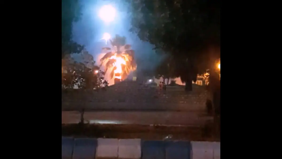 آتش زدن درخت نخل برای ترساندن اهالی یک محل در آبادان + فیلم