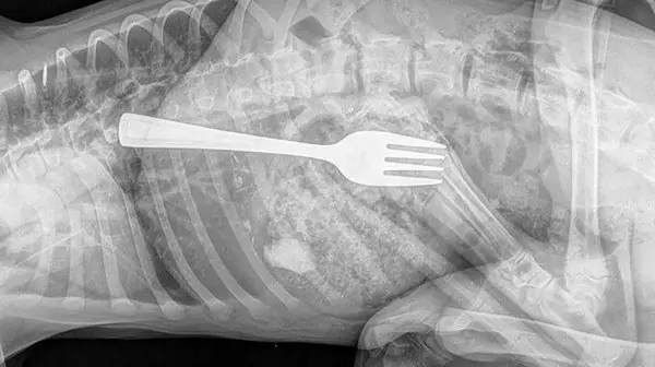 براساس این گزارش، این سگ موقعی که لقمه های بزرگتر از دهان خود گرفت، چنگال را نیز همراه آن بلعید و در حال مرگ بود که مرکز اورژانس با اقدام به موقع برای جراحی آن، موفق شد چنگال را از شکم این حیوان دست آموز خانگی خارج کند و سگ را از مرگ نجات دهد.