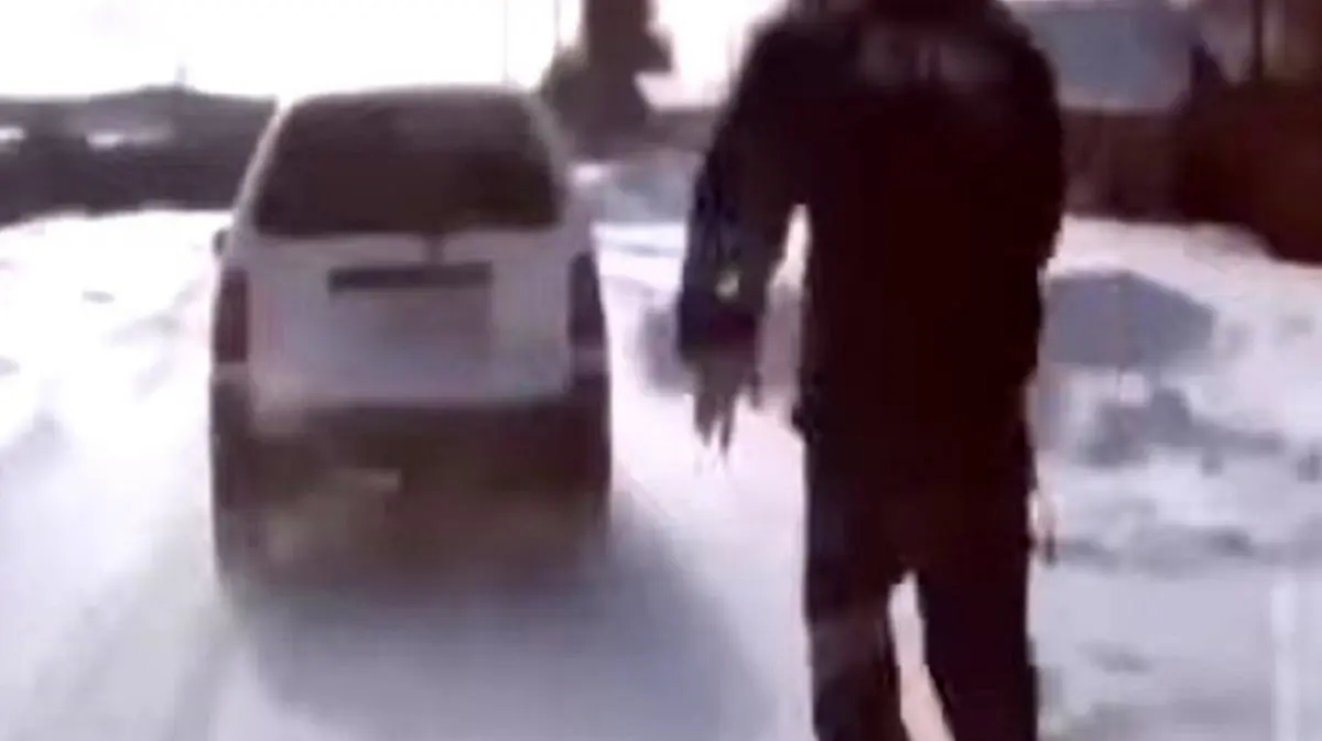 در ادامه ویدیو مشاهده می شود تعقیب و گریز ماموران پلیس با این راننده در یک جاده پوشیده شروع شد و در ادامه و با کند شدن حرکت خودروی راننده فراری در جاده برفی این مامور از خودروی پلیس پیاده شده و اقدام به تعقیب خودرو می‌کند که پس از رساندن خود به خودروی در حال حرکت اقدام به بازکردن درب آن کرده و وارد خودرو می‌شود .