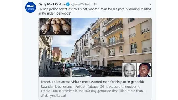به گزارش رکنا،فلیسیان کابوگا 84 ساله که برای سرش 4 میلیون پوند جایزه گذاشته شده، متهم به نسل کشی قبیله هوتو است.