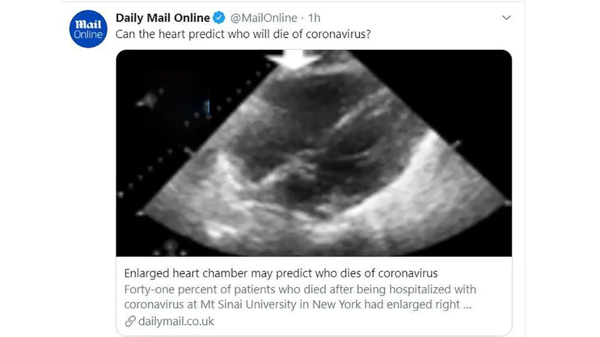 طبق بررسی پزشکان آن ها از روی علائم 110 بیمار کرونایی متوجه شدند که بزرگ شدن بطن قلب میتواند علامتی از وقوع مرگ در بیمار باشد که این نظریه نیز تحت بررسی قرار گرفته است.