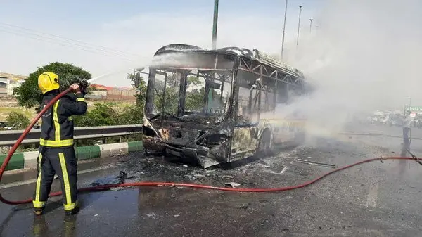 فیلم آتش سوزی مهیب اتوبوس شرکت واحد در تبریز +عکس