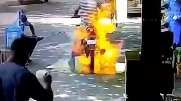 ضدعفونی کردن موتورسیکلت آتش به پا کرد + فیلم