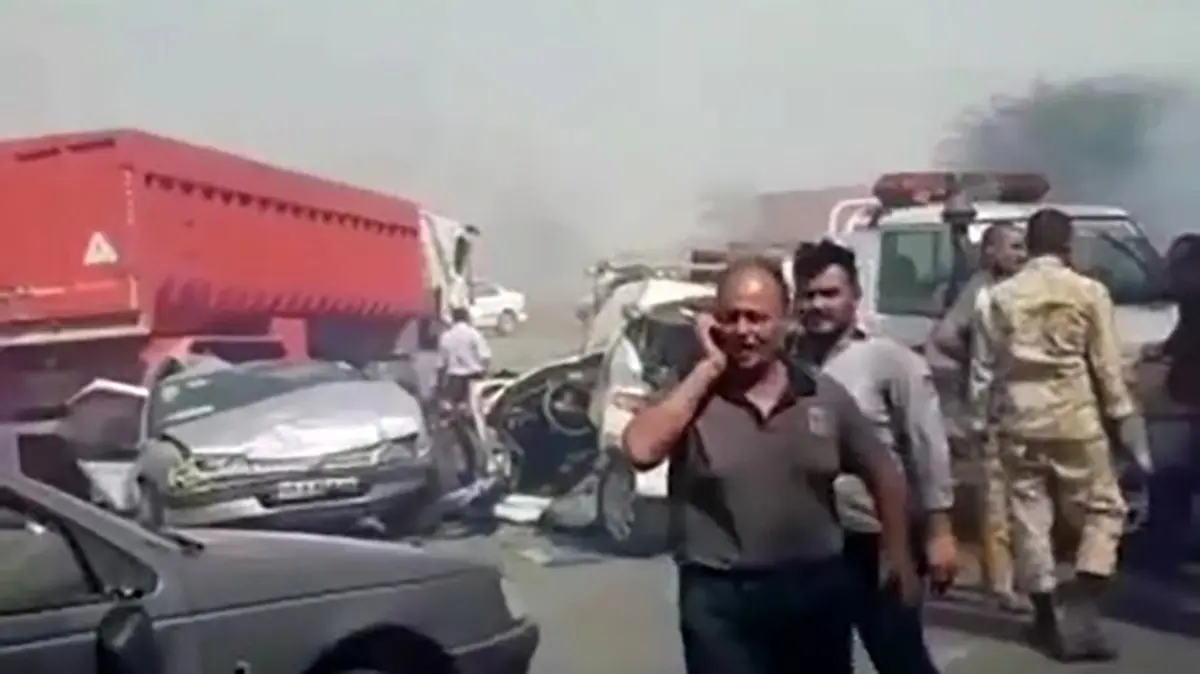 عکسی هولناک از تصاویر زنجیره ای در جاده اهواز به شوش