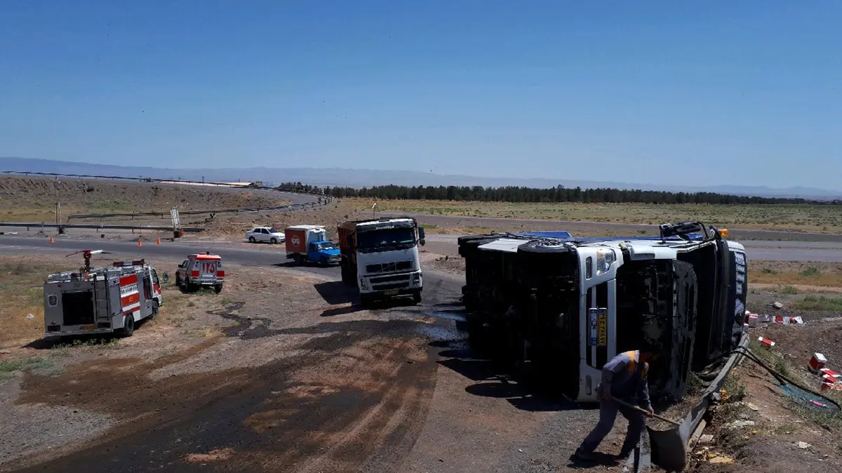 باز هم حادثه تصادف / واژگونی تریلر در تربت جام + عکس