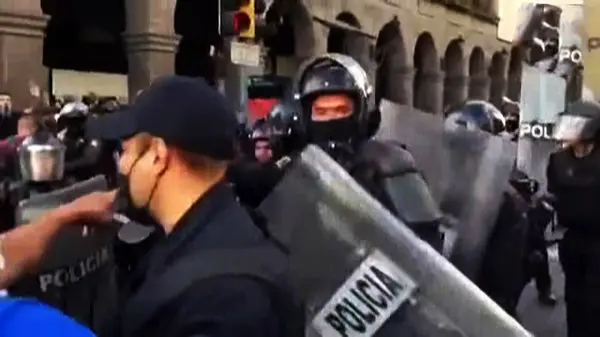 در این ویدیو نشان می دهد که مردم ، معترض به قتل یک جوان توسط پلیس مکزیک اقدام به آتش زدن یک مامور پلیس که سوار بر موتورسیکلت بود، کردند که خوشبختانه این مامور توسط همکارانش نجات داده شد.