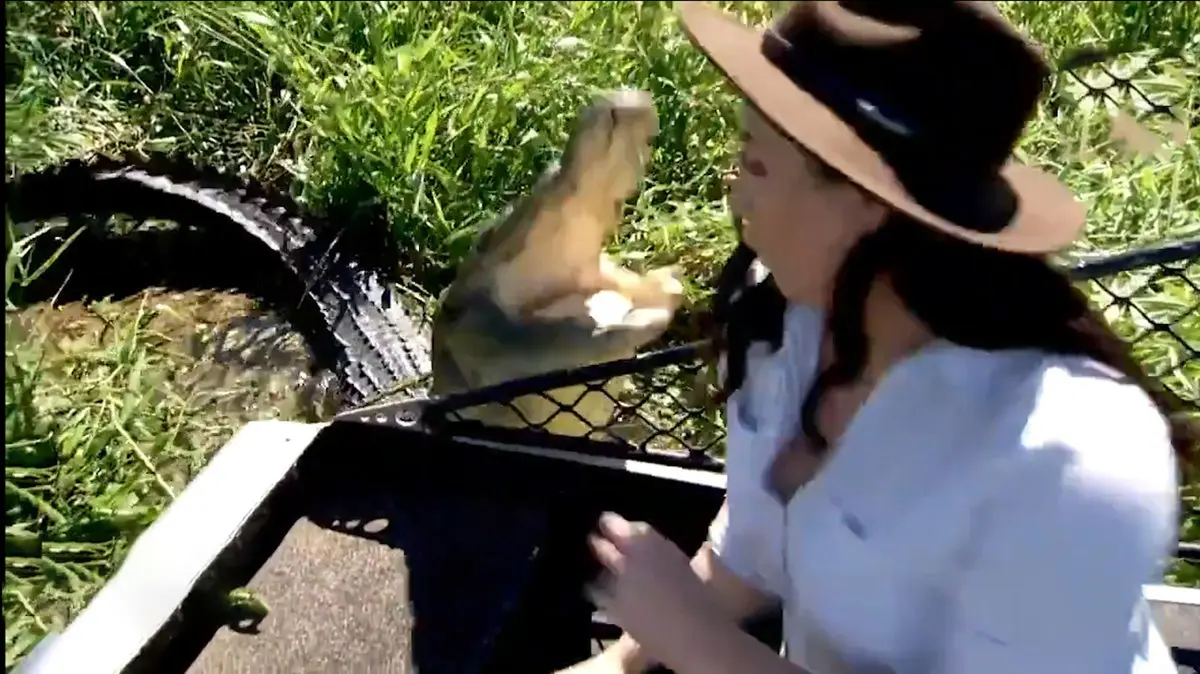 حمله تمساح به خانم خبرنگار + فیلم