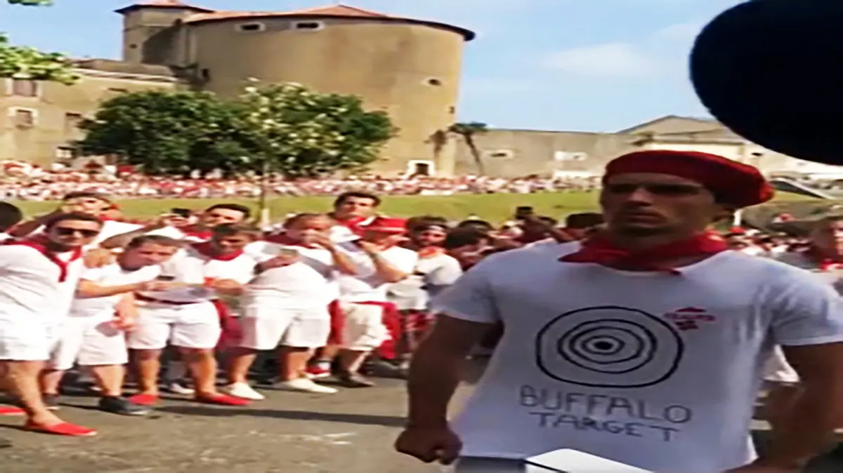 در این ویدیو نشان می دهد که یک گاوباز که بر روی پیراهنش طرح یک سیبل وجود داشت با حمله بوفالو به شدت مصدوم شد که با امدادرسانی شاهدان عینی به بیمارستان منتقل شد و تحت درمان قرار گرفت.