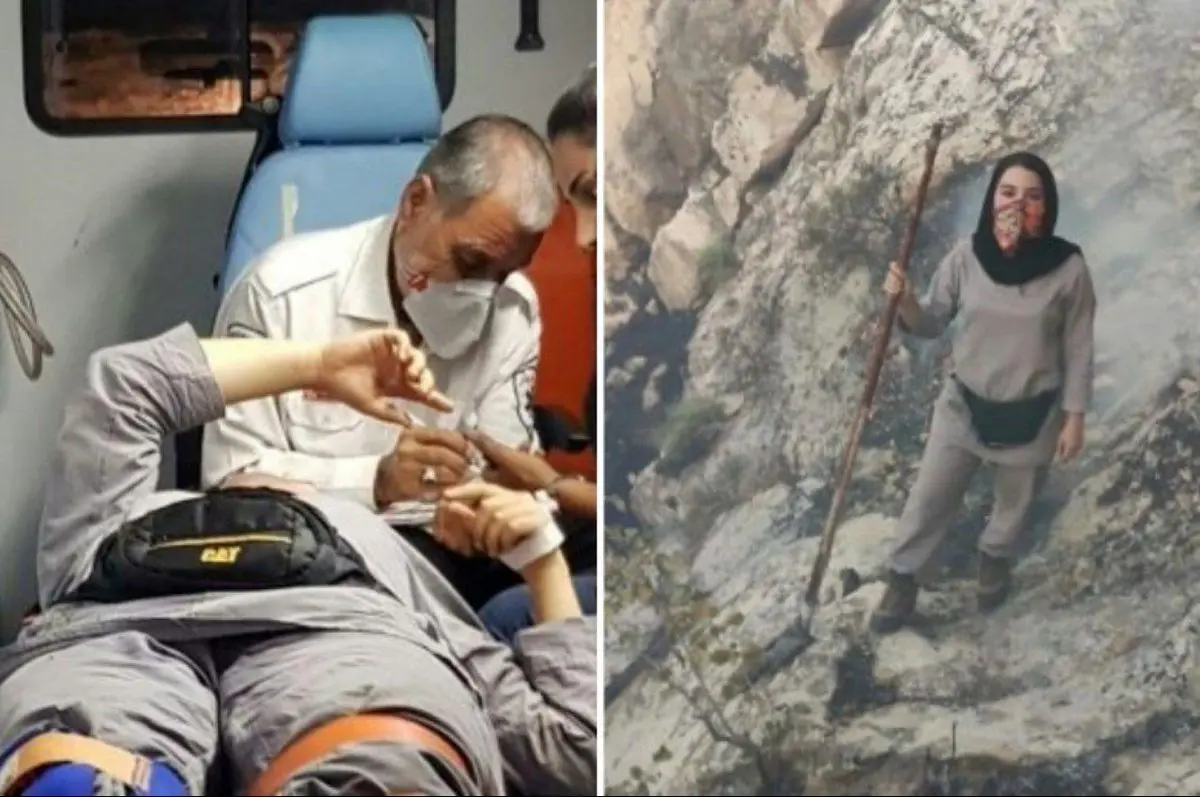 حوادث رکنا: رویا جانفزا دختر دهه هشتادی که برای خاموش کردن آتش کوه خائیز در تلاش بود مصدوم شد.
