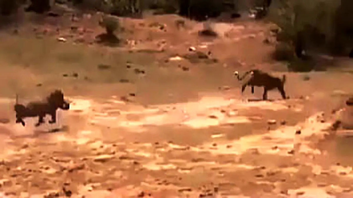 حوادث رکنا:یک گراز در آفریقای جنوبی با حمله به پلنگ، جان فرزندش را از دست این حیوان درنده نجات داد.