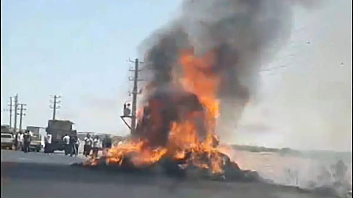 حوادث رکنا: فیلمی از آتشسوزی یک دستگاه خاور حامل بار در جاده ورامین را مشاهده میکنید.