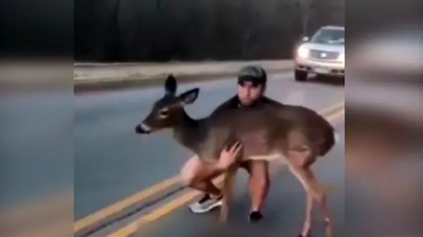 به گزارش رکنا، فردی در حال رانندگی وقتی دید گوزن از ترس وسط جاده خشکش زده و حرکت نمیکند و جانش در خطر است از خودروی خود پیاده شده و جان این حیوان را نجات داد.