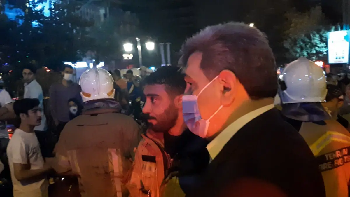 شهردار تهران دقایقی در صحنه مانده و در گفت و گو با آتشنشانان به بررسی حادثه پرداخت.