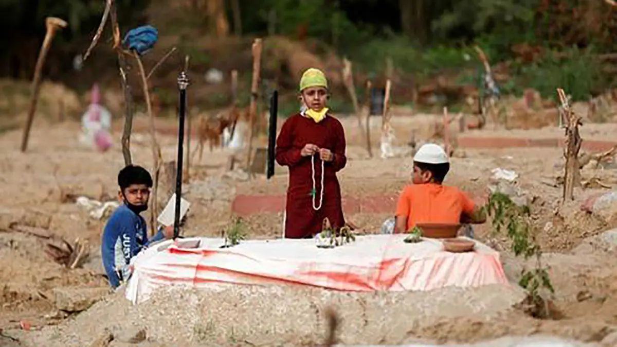 حوادث رکنا : کودکان در دهلی بر سر مزار یک فوتی در اثر کرونا حاضر شدند.