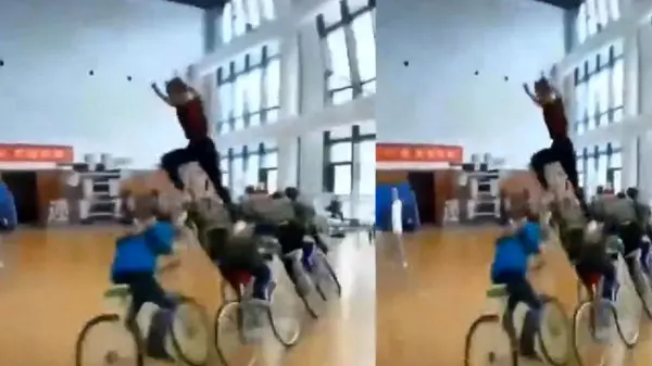 حوادث رکنا:ویدئوی دویدن یک دختر جوان روی پشت حدود ۱۰ دوچرخه سوار در حال حرکت به ویدئویی داغ تبدیل شده است.