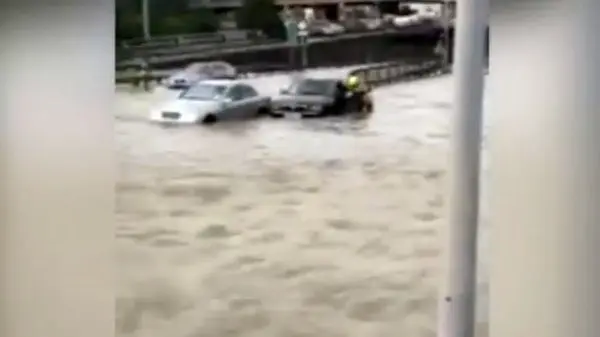 گرفتار شدن ۸ نفر در آبگرفتگی برخی معابر لندن + فیلم