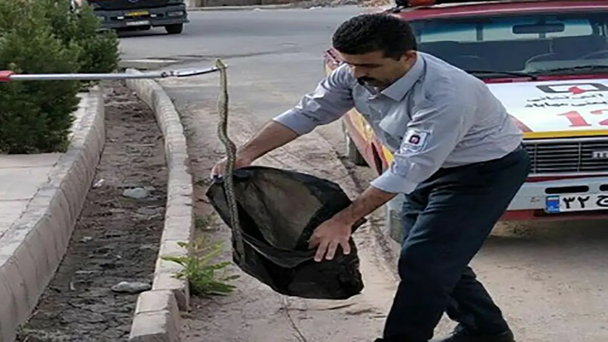 حوادث رکنا : یک مار سمی در مهاباد شناسایی شد و به دامان طبیعت توسط آتش نشانان بازگشت.