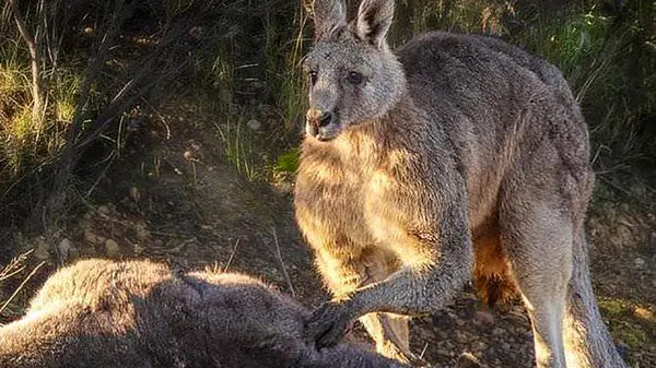 عکس / کانگورو نر غمگین بر سر جنازه جفت و فرزندش