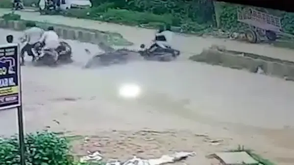 به گزارش رکنا، هنگامی که یک زوج هندی سوار بر موتورسیکلت قصد تغییر مسیر در جاده را داشتند، سه موتور سوار دیگر با آنها برخورد کردند.