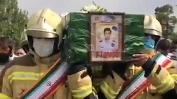 مرتضی حیدری آتشنشان جوان تهرانی که در آتش سوزی شوش هنگام خدمت به شهادت رسید مراسک خاکسپاری اش امروز برگزار شد.