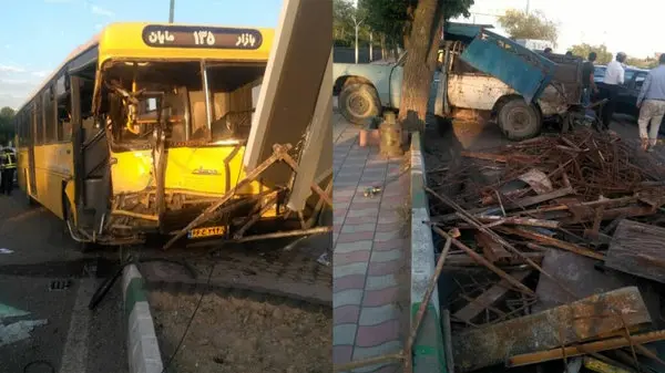 عکس تصادف خونین اتوبوس واحد با جدول در تبریز