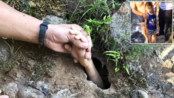 پسربچه چینی که هویتش مشخص نشده در حال شنا در یک رودخانه بود که توسط جریان شدید آب به داخل تونل کشیده شد. پدربزرگ این کودک به رسانههای محلی گفت که نوه اش در حال شنا در داخل رودخانه بود که ناگهان ناپدید شد. در حالی که او به همراه سایر افراد روستا در جستجوی نوه اش بود دست پسربچه را که از داخل سوراخ کوچک تونل آب بیرون آمده بود مشاهده کرد.