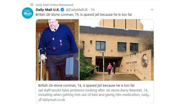 به گزارش گروه ترجمه رکنا، چاقی بیش از حد مرد انگلیسی دلیل آزادی وی از زندان شد.