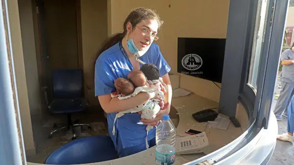 ثبت لحظه اى از فداکارى کادر درمان در انفجار بیروت