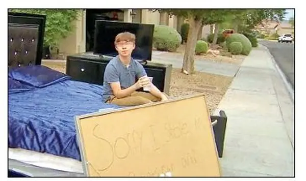 به گزارش رکنا، این نوجوان اهل آریزونا با تخت و تلویزیونش در پیادهرو به سر میبرد و وضعیت او سوژه برخی رسانههای تصویری این کشور هم شد. این نوع تنبیه کردن کودکان و نوجوانان در برخی کشورها بهعنوان تنبیهی موقت و گذرا مرسوم است اما روانشناسان با آن بهشدت مخالف هستند.