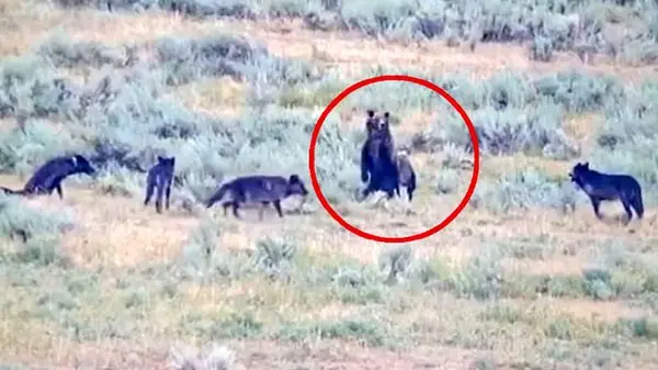 لحظه رویارویی خرس مادر با گله گرگ ها + فیلم