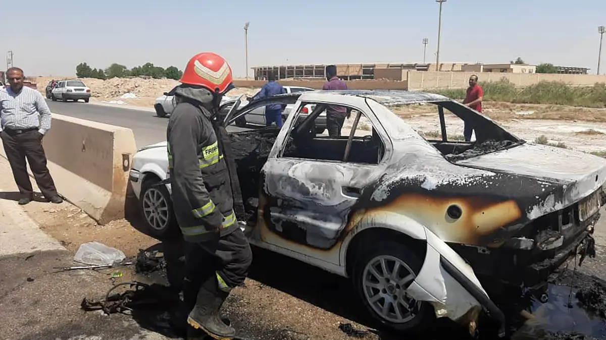زنده زنده سوختن مرد آبادانی در سمند جزغاله شده + عکس