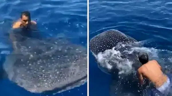 اقدام باورنکردنی یک مرد عربستانی با کوسه نهنگ! + فیلم